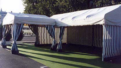 réceptions de qualité. Location Feray peut implanter des dépendances, un vestiaire, un podium pour orchestre, une piste de danse, des éclairages... selon vos besoins. Ci-contre et ci-dessous, quelques réalisations qui témoignent de la diversité des possibilités. |